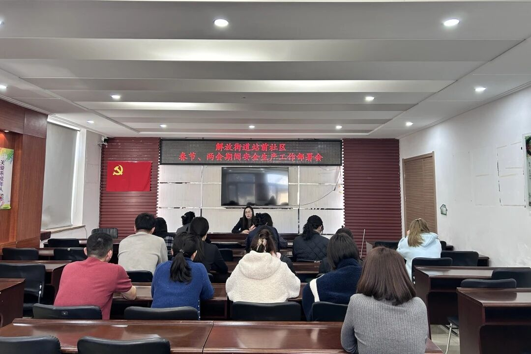 为迎接新春佳节的到来,扎实做好春节前安全生产工作,进一步提升居民群众的安全防范意识和应急救援处置能力,预防并减少事故的发生,解放街道站前社区开展节前安全生产工作部署。