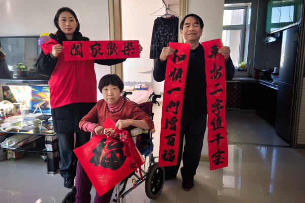 益心守护队的志愿者们将文化传承与暖心陪伴相结合。一方面,在服务站内组织居民开展“巧手编织中国结”主题活动,通过传统手工艺制作,为老人们提供情感交流的平台,慰藉精神世界,营造邻里守望的温馨氛围。同时邀请辖区在职党员志愿者现场为社区特殊群体、高龄独居老人等书写寓意吉祥的“爱心春联”与“福”字,随后益心守护队队员将传统文化的韵味与新年的美好祈愿一同送入特殊群体家中,将节日温情与文化关怀精准传递到群众心坎上。