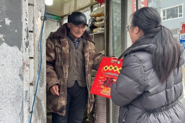 社区工作者化身“送福小分队”,带着寓意吉祥的福字、春联,走进高龄老人、独居老人、残疾家庭、困难群众家中,将最真挚的新春祝福和关怀送到居民心坎上。走访中,工作人员与居民亲切交流,一边送上新春的美好祝福,一边认真倾听大家对社区工作的意见建议。一句句暖心的“新春快乐”,一次次真诚的促膝长谈,不仅拉近距离、增进情谊,更让邻里温情在寒冬里悄然传递,让社区与居民的心贴得愈发紧密。
