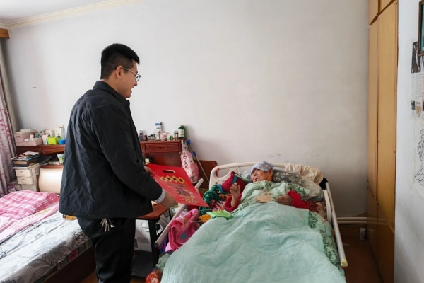 在独居老人赵大娘家中,工作人员一边帮老人整理房间、排查用电用气安全隐患,一边拉着老人的手唠起家常。“大娘,最近天气冷,您要多添衣物,有任何需要随时给网格员打电话。”工作人员详细询问老人的饮食起居与健康状况,认真记录下老人的需求。赵大娘握着工作人员的手激动地说:“我年纪大了,出门不方便,社区年年都想着我,不仅送来春联福字,还关心我的生活,真是比亲人还贴心!”
