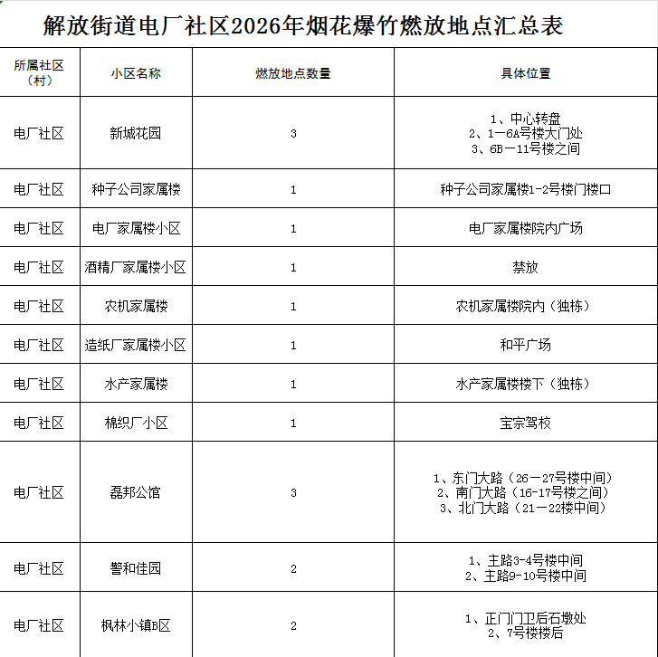 四、电厂社区烟花爆竹集中燃放地点