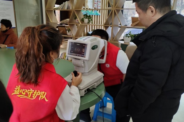 上午9点,服务站内已排起队。益心守护队的医生携带专业设备,为居民提供视力检查、眼底筛查、用眼指导等一站式服务。