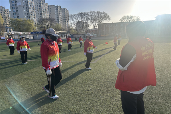 4月17日-4月23日,为了维护公共环境的和谐与安宁,保障居民在早晚休息时段不受噪音干扰,和平街道四合社区积极行动,继续组织志愿者并与城市管理局执法人员紧密合作,对体育场内的舞蹈队活动进行了细致的劝导与管理。