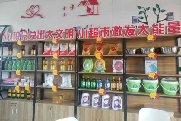帽山村积分超市在2022年3月正式成立,村民通过参与各项志愿服务活动及日常的良好表现进行积分,爱环境、懂品行每月评比一次,讲诚信、做表率、争先进每年评比一次,具体评分标准经村两委研判确定后上墙公示,每次评比由村干部和村民共同投票,公平公正。村民得到的积分存入个人道德银行中,每年在积分超市兑换一次。
