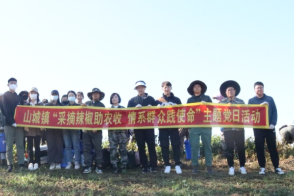 9月20日,山城镇组织70余名党员干部深入南沟村辣椒种植地,开展“采摘辣椒助农收 情系群众践使命”主题党日活动。