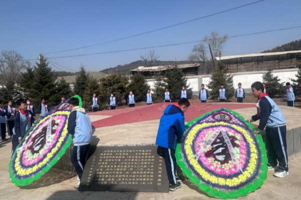 4月2日上午,少先队员们迈着整齐的步伐,举着鲜艳的队旗,伴随着和煦的春风来到烈士陵园。少先队员代表为烈士敬献鲜花,全体默哀,以表达对烈士们深深的哀思和崇敬之情。
