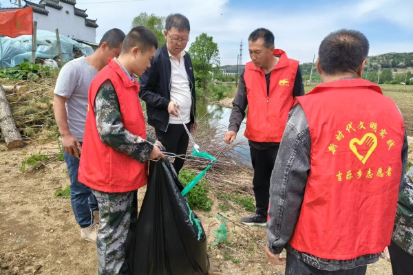 为深入贯彻落实习近平生态文明思想,牢固树立“绿水青山就是金山银山”的生态理念,全力营造“水清、岸绿、河畅、景美、人和”的生态环境。5月24日,吉乐乡组织全体党员、机关干部到吉祥村开展“吹响清河集结号,水清岸绿促振兴”主题党日活动,以实际行动坚决打好河湖治理保卫战。 此次清河行动,主要清理整治吉祥村村部后河岸卫生。大家激情满怀,身着志愿服,手拿垃圾袋、垃圾钳等工具,顶着烈日、挥洒着汗水加油干。
