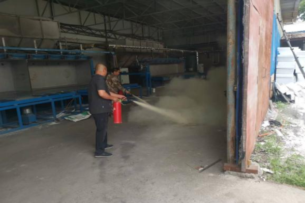 活动中,关镇长向工人干部进行了安全生产知识的宣讲,确保人人理解到位,学习到位。随后检查了厂房的防火器材与安全设施,对工作生产中可能发生的安全隐患进行了排查。在实际演练的过程中,通过在厂房清理易燃物后的安全空地处点燃小堆明火的方式,进行了逃生演练,并现场使用灭火器材扑灭火焰。整个活动过程全程可控,具有可操作性,给在场的每一个人上了一节生动的安全课。