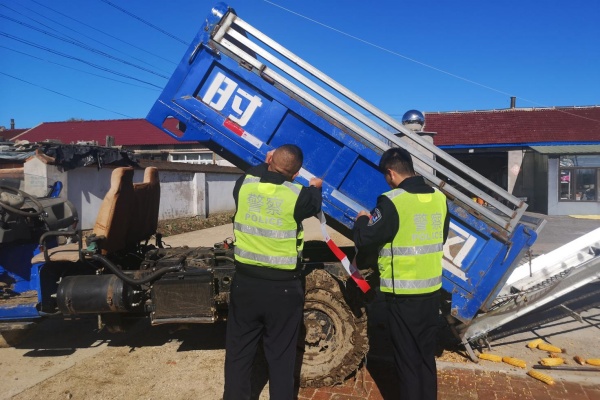 保秋收道路交通安全专项整治行动开展以来,共出动车辆20台次,民辅警、警务助理120余人次,深入村屯对农机车辆、电动三轮车等粘贴反光贴300余辆(台)次,开展交通安全教育5次,劝导农用车载人、电动车非法载人、骑电动车不戴头盔等交通违法行为50余次,深入生产企业召开交通安全会议1次,发现整改道路交通安全隐患1处。
