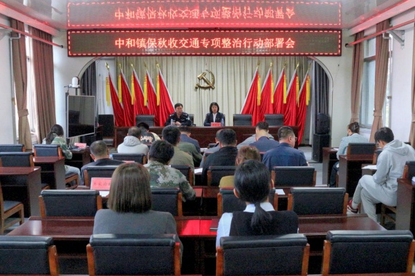 中和镇召开保秋收交通专项整治行动部署会议,镇应急管理办公室、派出所、农业技术推广和农机工作站及各村党支部书记参会。
