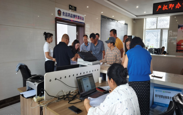 2025年7月15日,市农业推广总站的同志来到海龙镇政务大厅,和农机站全体工作人员对2025年农机购置补贴办理现场核验。