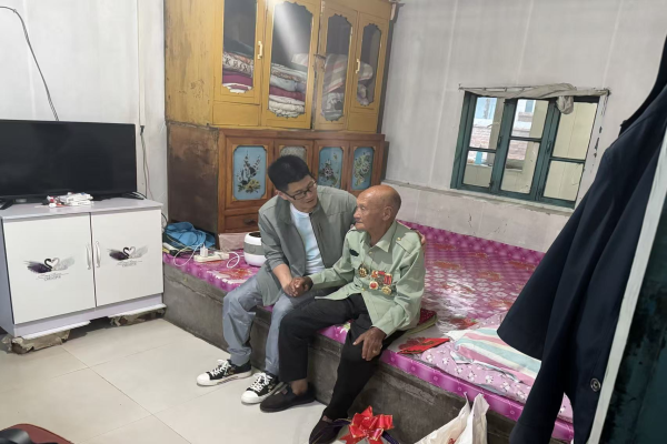 近日,杭州市光荣之家基金会董事长张国忠一行怀着对革命先辈的崇高敬意,在梅河口市退役军人事务局双拥科科长张志远和水道镇武装部长的陪同下,走访慰问了抗美援朝老兵佟富海,以实际行动传递党和社会的关怀与尊崇。