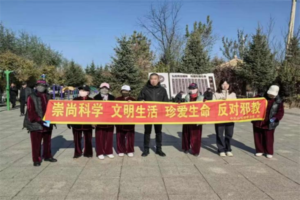 活动现场,工作人员与群众拉起“崇尚科学 文明生活 珍爱生命 远离邪教”等主题横幅,营造浓厚的宣传氛围。工作人员结合《最高人民法院 最高人民检察院关于办理组织、利用邪教组织破坏法律实施等刑事案件适用法律若干问题的解释》相关规定,向群众精准解读文件含义。