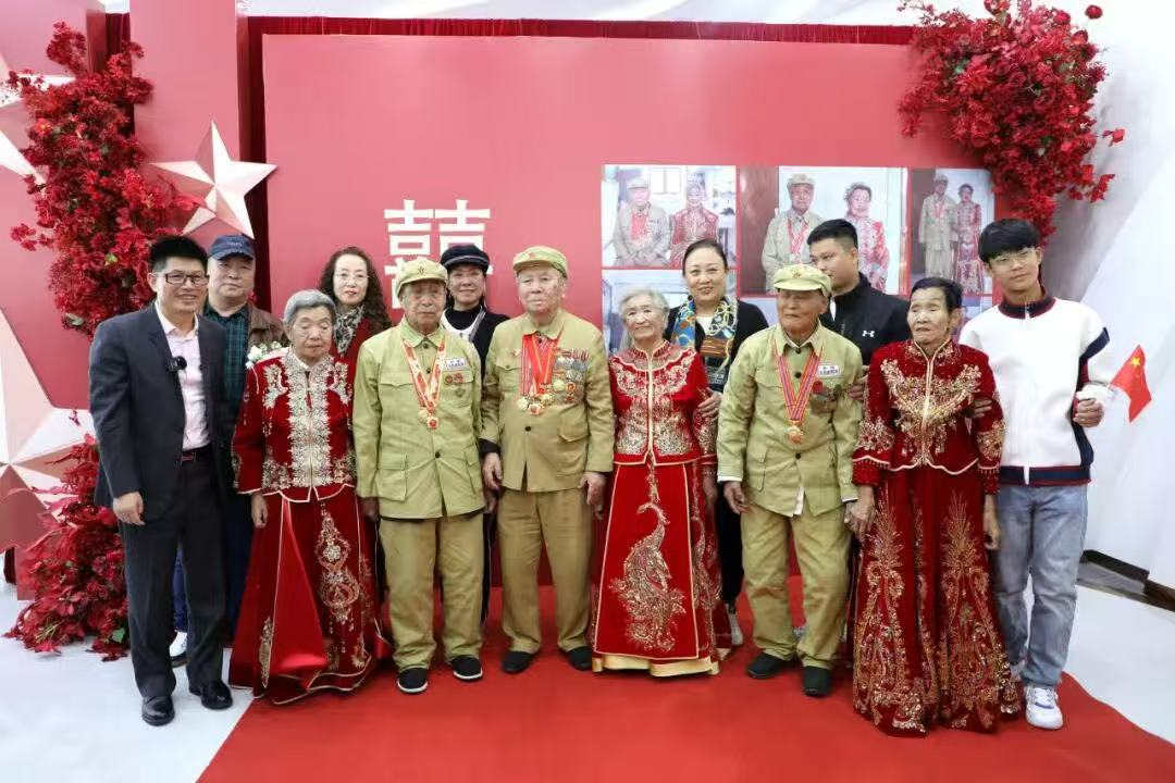 “雄赳赳,气昂昂,跨过鸭绿江……”上午十一时,熟悉的旋律在庆典现场响起,三对功勋夫妇身着中式礼服,在亲人的陪伴下踏上鲜花红毯。他们虽已步履蹒跚,却始终紧握双手——这双手,曾握枪卫国,如今执子之手,便是一生相守。看着老人们眼中闪烁的幸福泪光,现场掌声雷动,不少观众热泪盈眶。