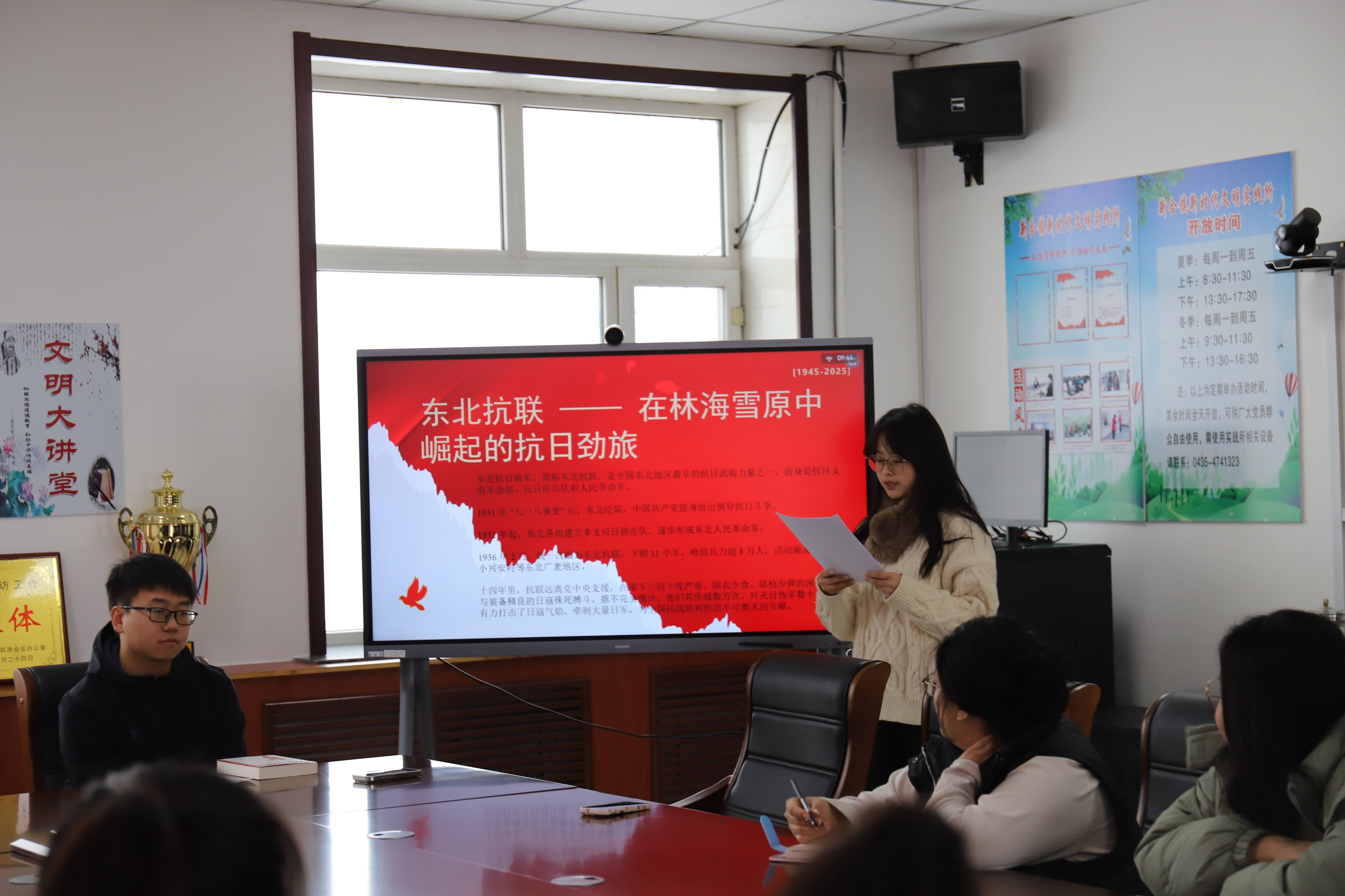 新合镇年轻干部刘畅以“感悟抗联精神,传承使命担当”为主题进行了分享。通过讲述革命先辈坚定的理想信念和忠贞不渝的爱国主义精神,不畏艰险、百折不挠的艰苦奋斗精神和不怕牺牲、勇于奉献的革命英雄主义精神,强调抗联精神在新时代仍具有重要的现实意义,鼓励年轻干部要从抗联精神中汲取奋进力量,把学习成果转化为推动工作的实际行动,不断提升自身能力,以更加饱满的热情和昂扬的斗志投身到各项工作中去。