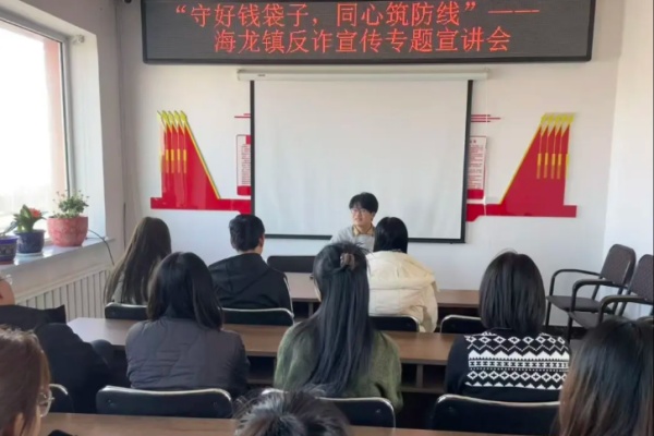 春节将至,为提升海龙镇居民反诈意识,筑牢财产安全防线,海龙镇平安办联合社区、团委、司法所,组织以“守好钱袋子,同心筑防线”为主题的反诈宣传专题宣讲会。
