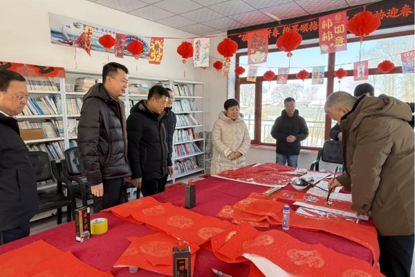 马年新春将至,市政协干部、新合村驻村第一书记赵艳一积极沟通协调,邀请市书法家协会著名书法家刘国海、付康生,剪纸艺术家黑久利,现场写春联、剪窗花,将新春祝福送给村民,让传统年俗在挥毫泼墨间得以延续,让文化惠民的暖意流淌在新合村的每一个角落。活动现场,市政协主席李宏艳与群众面对面亲切交流,细致询问群众生活状况及存在的实际困难,精准掌握民生诉求,为后续精准施策、优化民生服务提供依据。