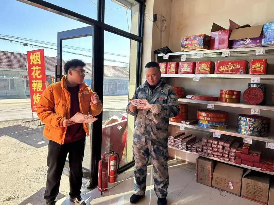 镇长带队深入辖区各烟花爆竹临时零售点,实地察看经营资质、产品摆放规范、消防设施配备、安全警示标识张贴等情况,重点排查是否存在“下店上宅”“前店后宅”、超量存储、店外存放等严重违规行为。