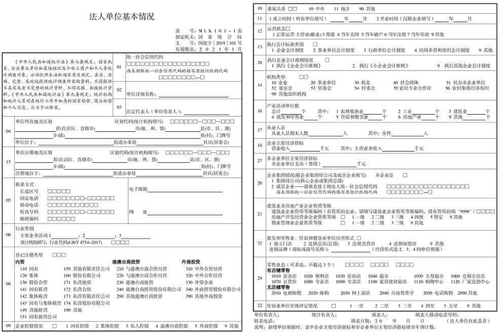 | 单位类型 □ 1.法人单位 2.产业活动单位