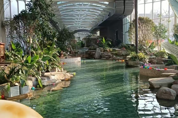 五奎山温泉河谷位于梅河口市湾龙镇五奎山旅游度假区内,项目总投资1亿元,一期占地面积9200平方米,建筑面积近5000平方米,温泉水来源于地下2700米,出水温度 40℃左右。五奎山温泉河谷,依势而建,深藏于世外桃源般的山谷之中,将自然之美与现代生活完美结合,充分利用地势落差打造出富有层次感的室内温泉,河谷总长210米,落差6米,除210米长温泉河之外,还有12个独立泡池,场地内设有具备餐饮功能的接待大厅及休闲娱乐配套设施。河谷整体采用钢结构和玻璃幕,大厅为50米乘30米椭圆形,内高13米,河谷宽15米,内高8米。温泉河谷以“听自然,观四季”为设计理念,打造回归自然的自愈之地。