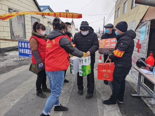 镇领导班子深夜亲自为一线卡点值守人员送暖瓶、热水,曙光村党员张宏福为卡点值守人员送方便面、牛奶等生活用品;在当前口罩难求的情况下,村民主动为卡点值守人员送去口罩,对他们在防控疫情工作中的辛苦付出表示感谢。
