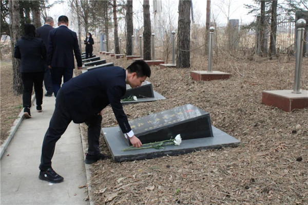 全体党员干部还来到烈士墓前,怀着沉重的心情擦拭烈士墓,并敬献鲜花,以此来表达对先烈们的无限哀思。