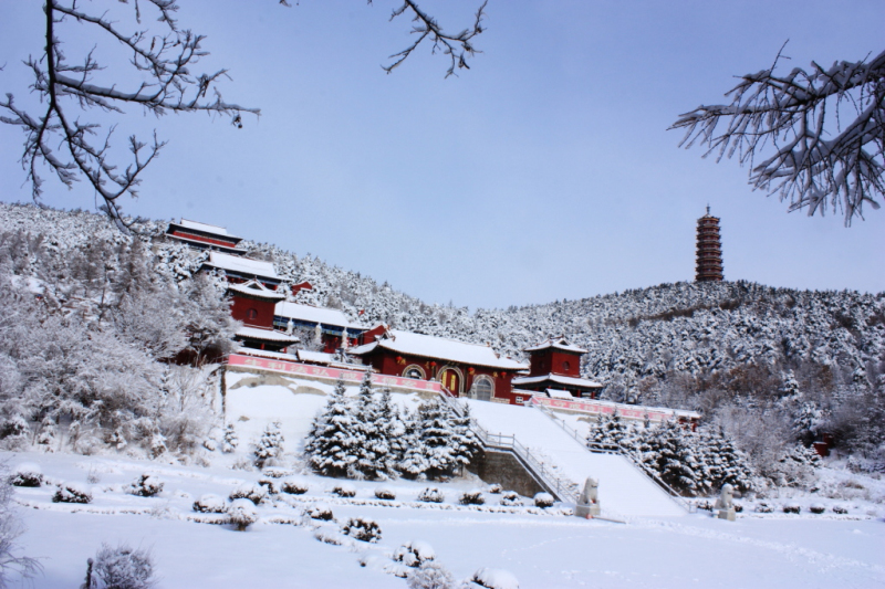 该景区是仿清代皇家庙宇建筑群落为主体国家3A级景区。距市中心9公里。原为清代皇家猎场,景区内山峦起伏,五峰耸立,松柏苍翠,山泉淙淙。牌楼、楼阁、宝塔、碑碣、园林等景观依山而建,错落有致。主要景观有龙泉寺、万佛塔。