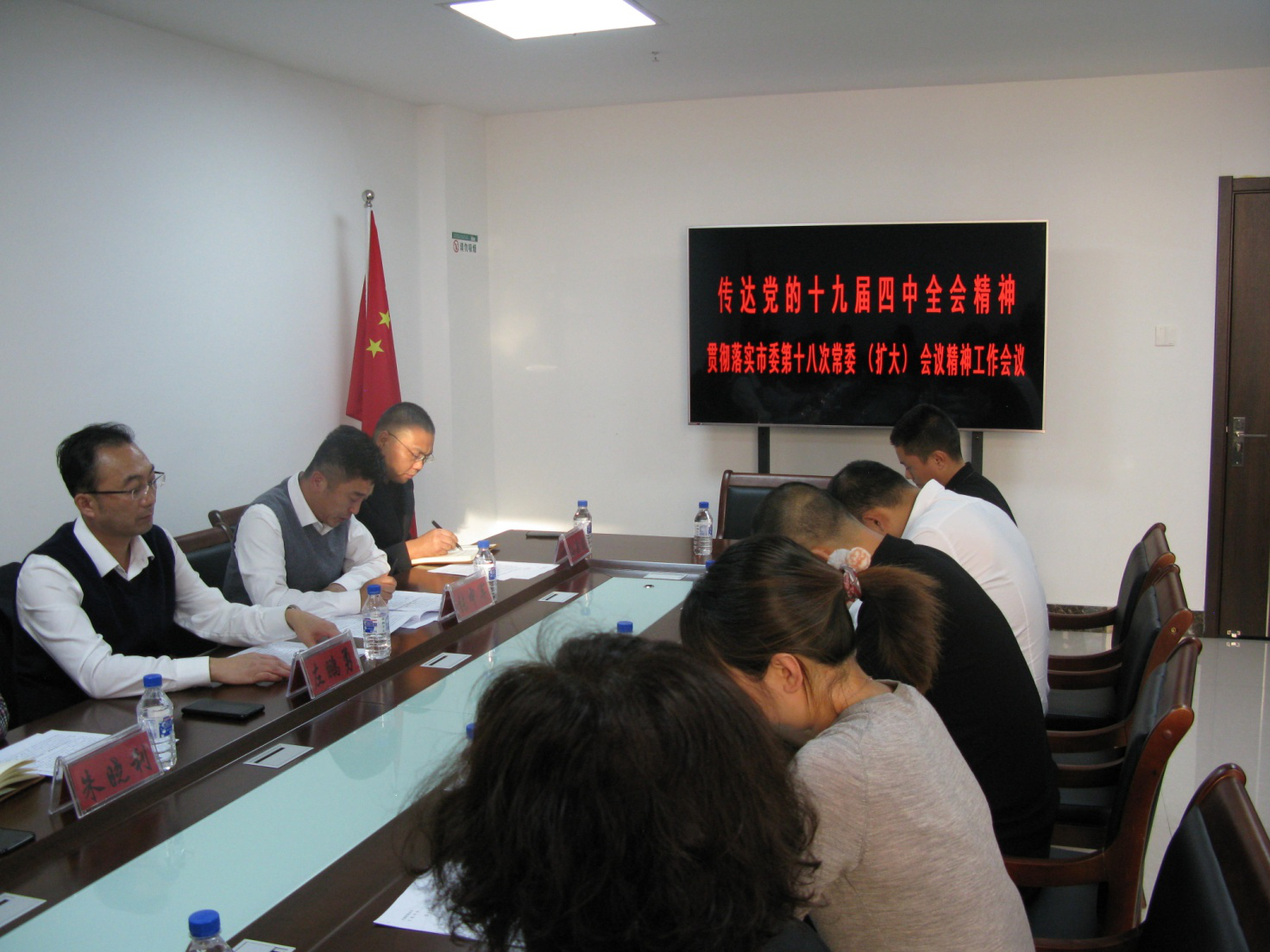会议要求,全局要深入学习贯彻落实党的十九届四中全会精神;一是全局各级领导干部要提高认识,深刻领会学习贯彻党的十九届四中全会精神的重大意义。二是要精心组织,迅速兴起学习贯彻党的十九届四中全会精神热潮,由局机关党工委负责,把握好重点内容,采取专题研讨、辅导报告、座谈交流、讲党课等多种形式认真组织学习。三是加强组织领导,局党组书记单位一把手亲自负责、层层落实学习责任,广泛宣传党的十九届四中全会精神,营造良好的学习贯彻落实氛围。