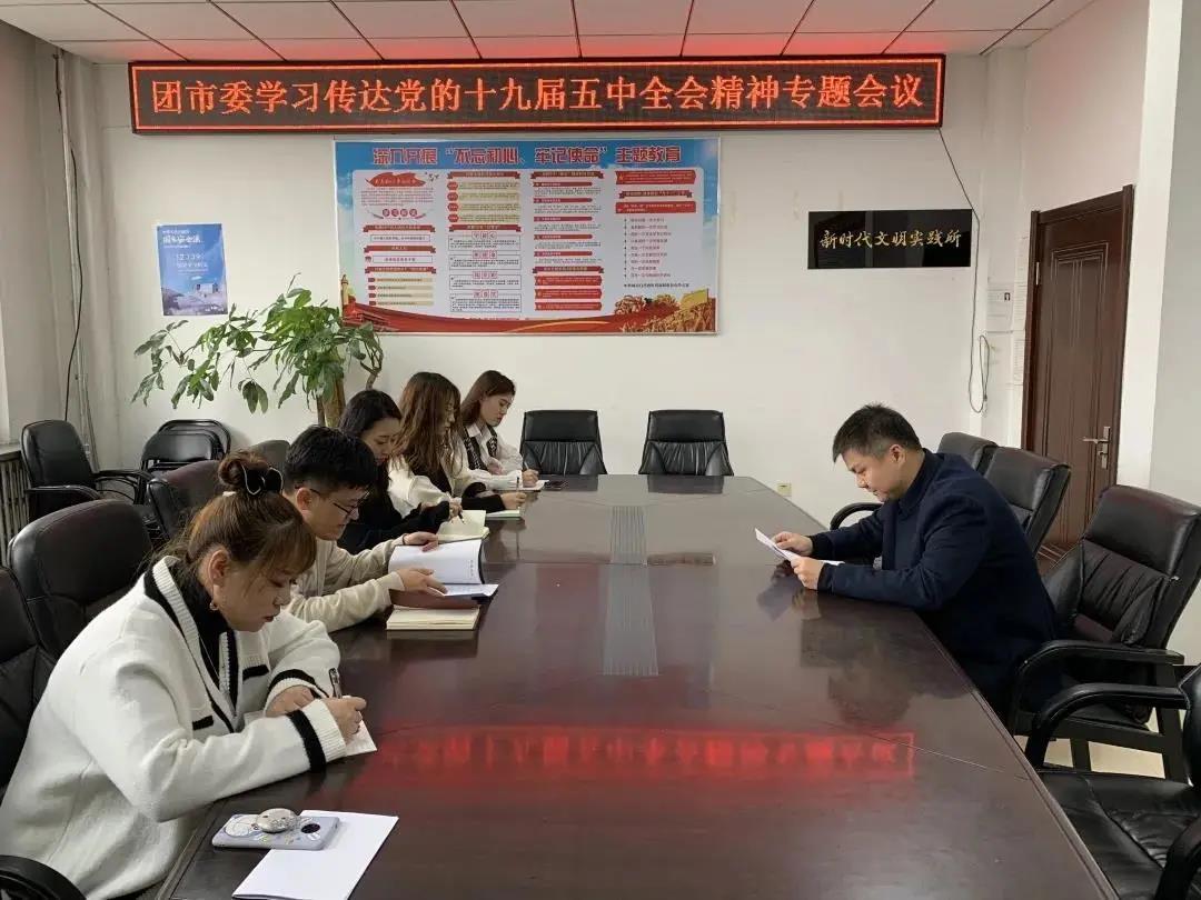 11月12日上午,团市委组织召开了关于深入学习贯彻党的十九届五中全会精神专题学习会议。会议强调,一是要把学习宣传贯彻十九届五中全会精神作为当前和今后一个时期团市委的首要政治任务,迅速研究部署相关工作,通过主题团日等形式组织全市各级团干部深入学习十九届五中全会精神;二是统筹联动迅速掀起学习热潮,坚持领导干部率先学、专题辅导深入学、基层组织全面学,组织全市青年讲师团广泛开展宣传活动。