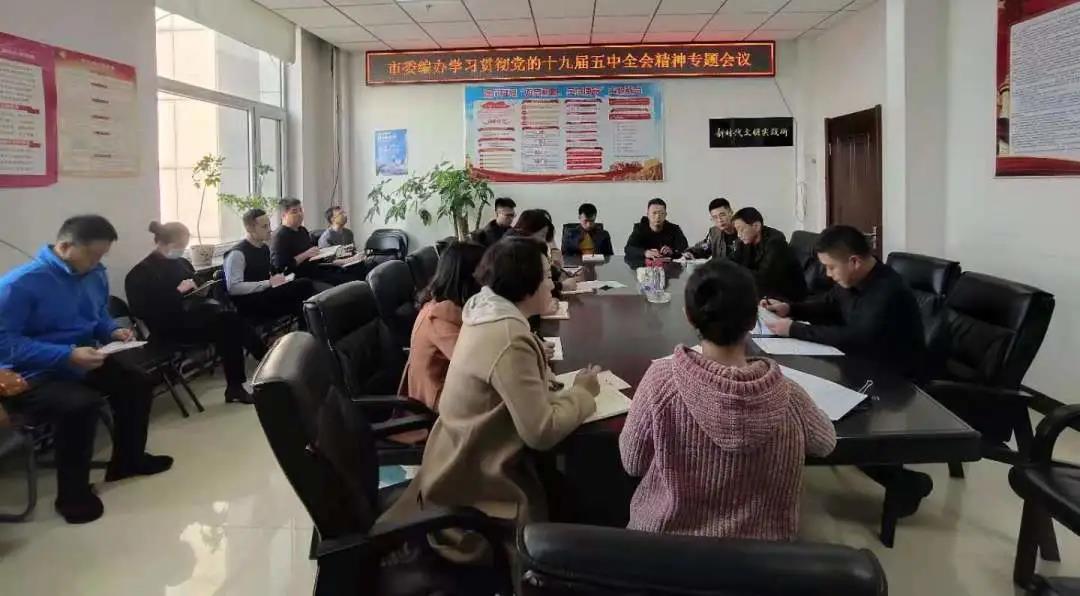 11月19日上午,市政府办公室召开学习十九届五中全会精神会议,办公室班子成员及全体机关工作人员参加会议。会议指出,要在履行办公室职责上充分展现“身在兵位,胸有帅谋”的新面貌,发挥“参谋助手”作用,高标准高质量谋划好下一阶段办公室工作,紧密结合办公室工作实际,因时因势确定工作重点,创新工作方式和手段,推动办公室工作高质量发展,确保“十四五”时期办公室工作开好局、起好步。