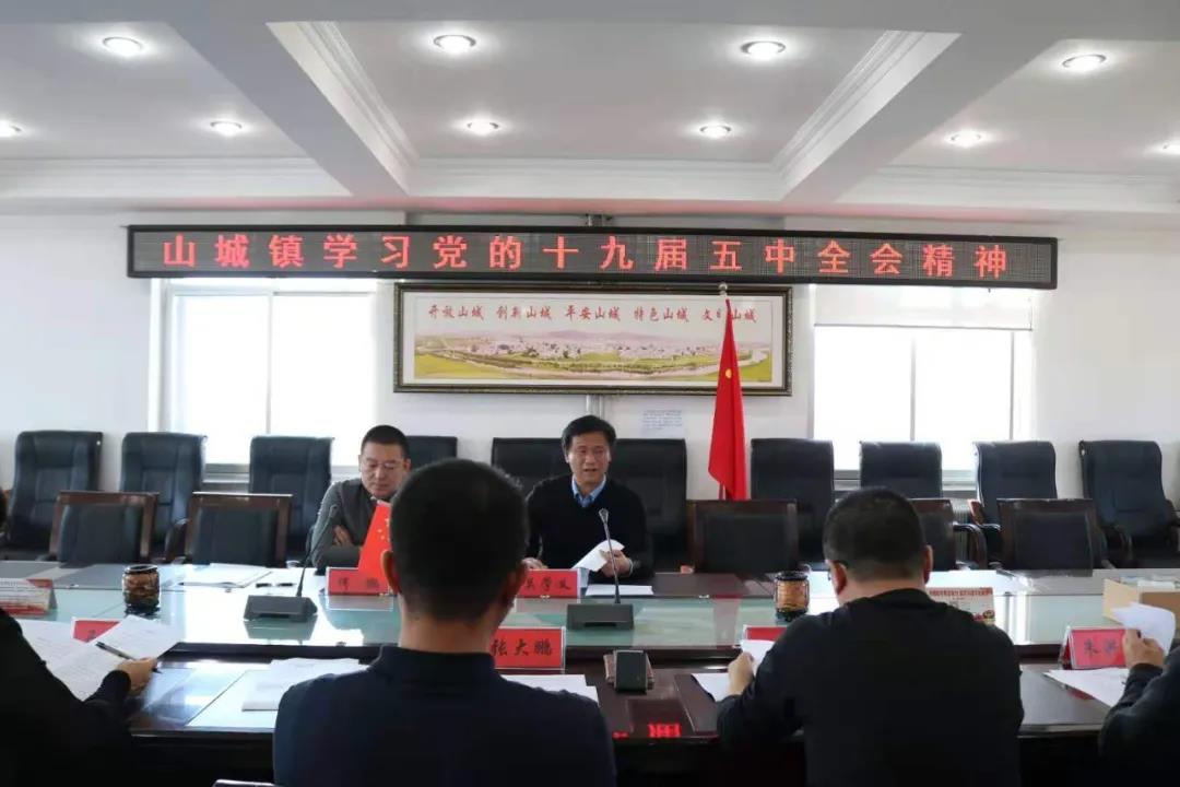 为学习领会宣传贯彻好党的十九届五中全会精神,将山城镇全体党员干部的思想认识统一到会议精神上来,山城镇组织开展学习十九届五中全会精神系列活动,掀起学习贯彻党的十九届五中全会精神热潮。会议要求各支部通过理论学习、支部会议、干部自学等形式,组织党员、干部带头学习传达党的十九届五中全会精神,结合本职工作贯彻落实五中全会精神,提高为民服务的能力。