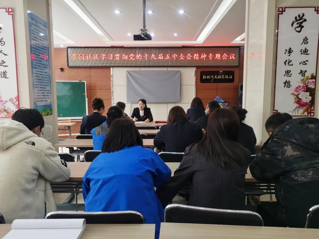 11月19日下午,翠园社区党委组织召开学习贯彻党的十九届五中全会精神专题会议。