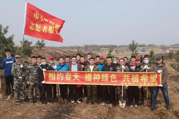 苍松翠柏山川秀,绿叶青枝景色新。为积极响应我市“全民义务植树周”工作安排,营造“全党动员、全民动手、全社会搞绿化”的氛围,4月11日,市委组织部开展了“相约春天 播种绿色 共植希望”义务植树活动。市委常委、组织部部长刘刚带领部内机关干部在湾龙镇共安村共种植红松120余棵,以实际行动为梅城大地广播新绿、再添生机、贡献力量。