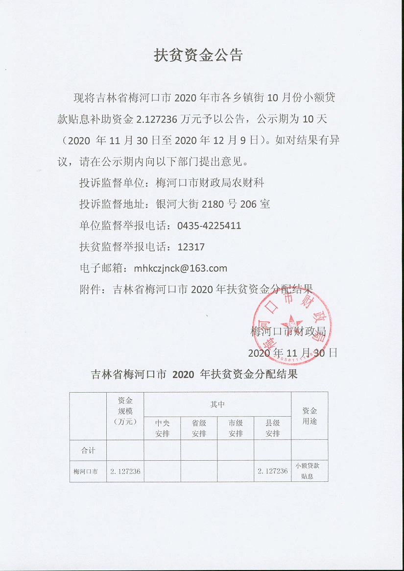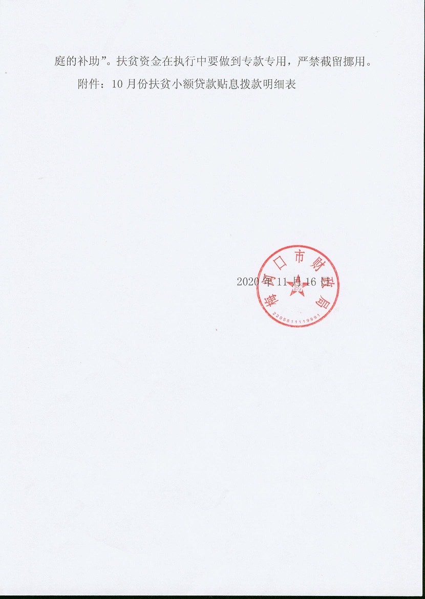 关于预算内拨付10月份扶贫小额贷款贴息的通知梅财农指[2020]173号