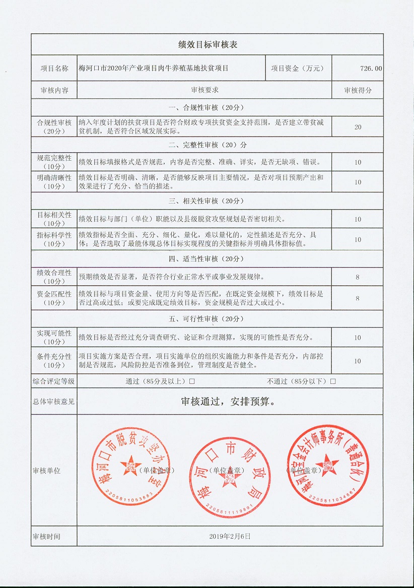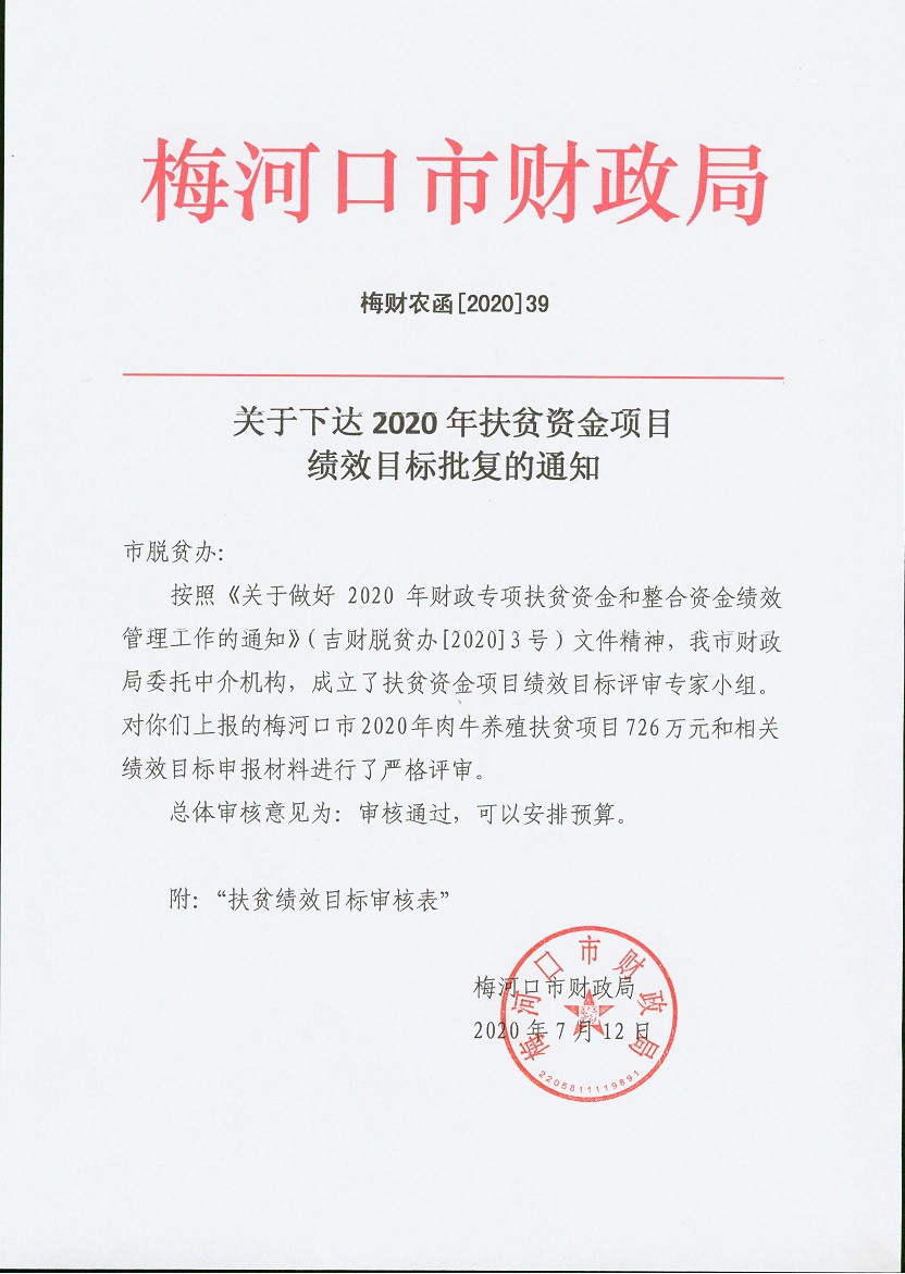 关于下达2020年扶贫资金项目绩效目标批复的通知 梅财农函[2020]39号