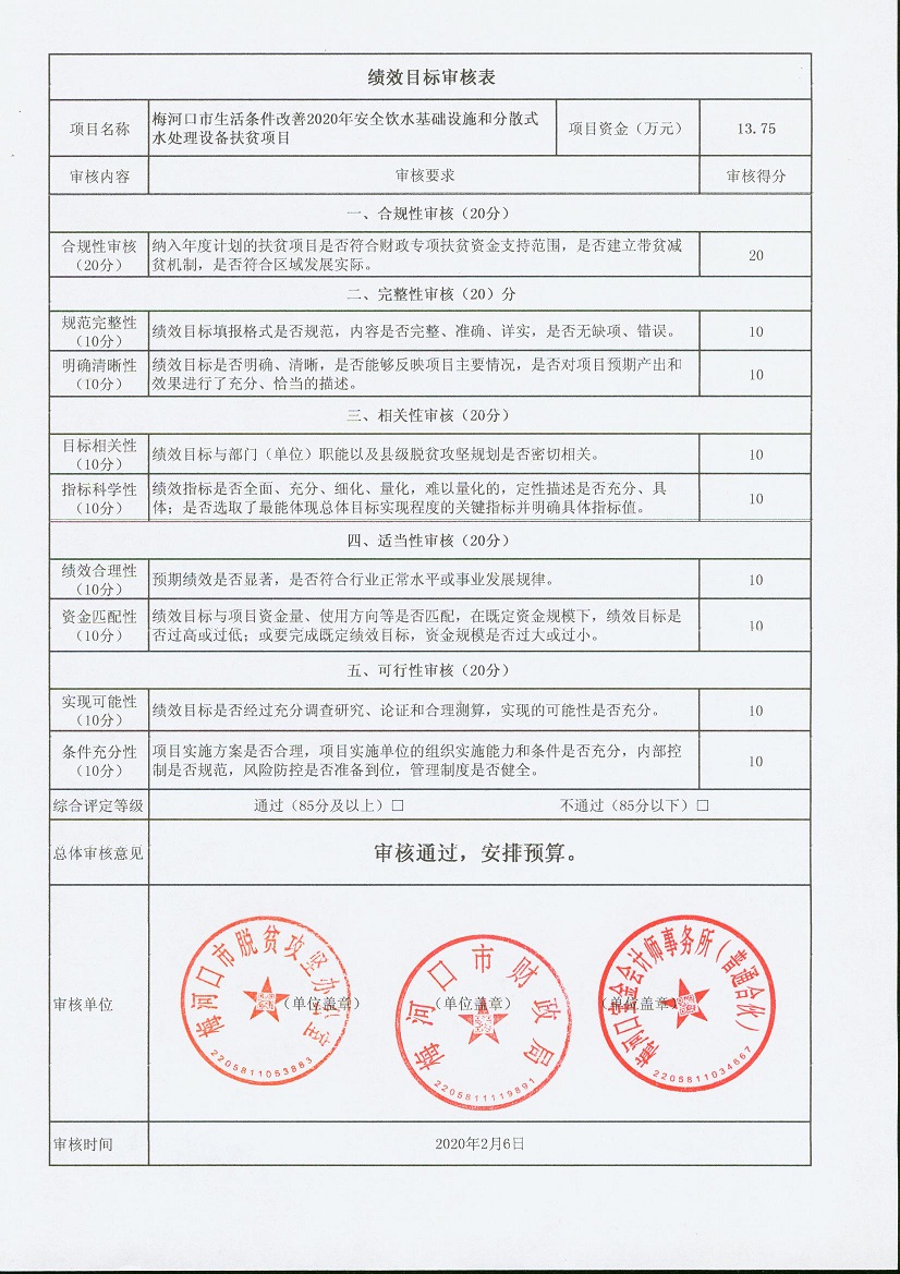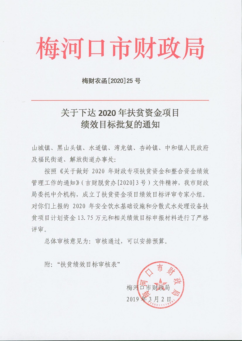 关于下达2020年扶贫资金项目绩效目标批复的通知 梅财农函[2020]25号