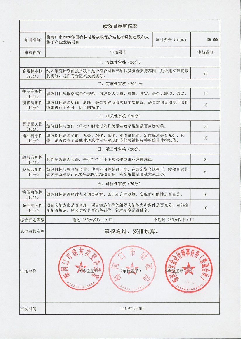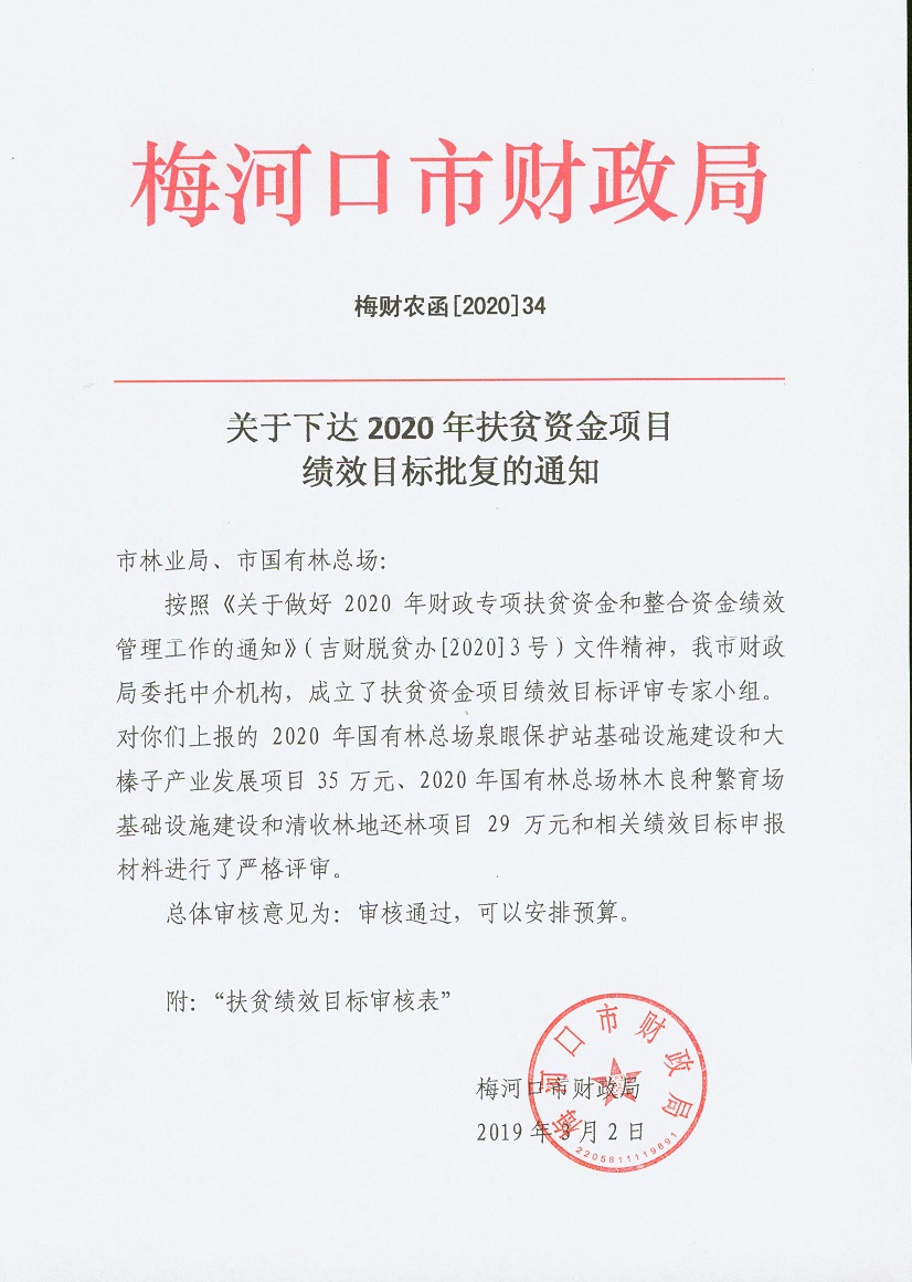 关于下达2020年扶贫资金项目绩效目标批复的通知 梅财农函[2020]34号