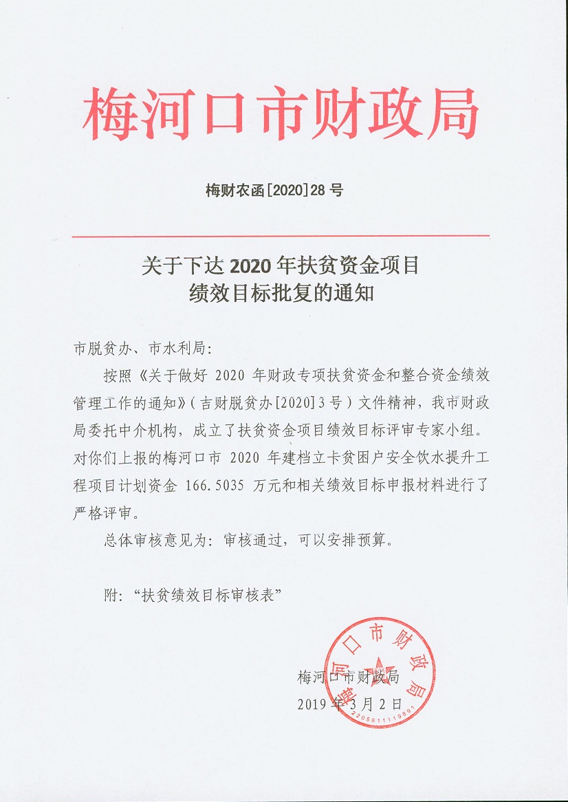 关于下达2020年扶贫资金项目绩效目标批复的通知 梅财农函[2020]28号