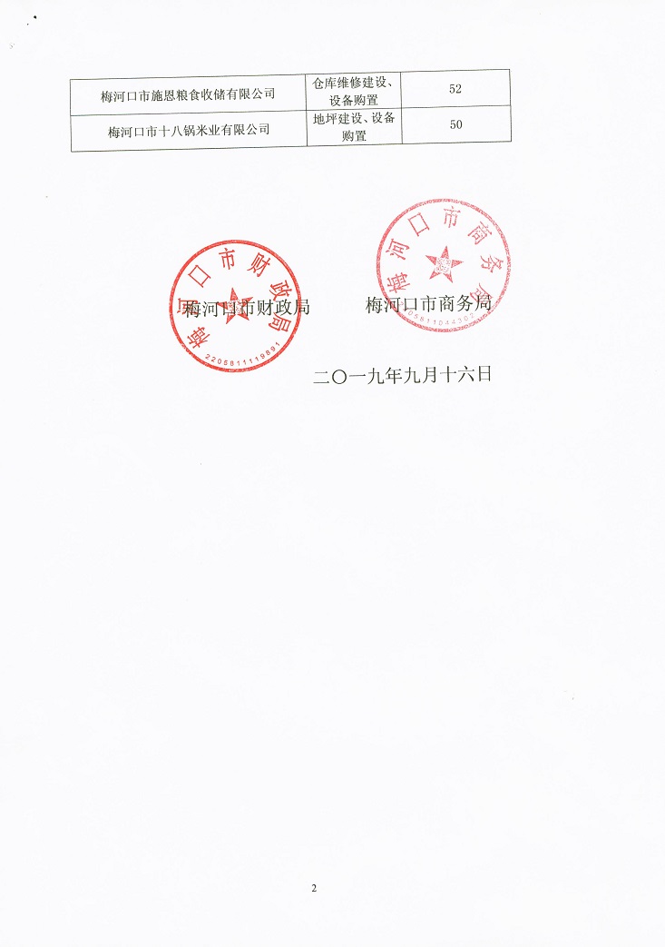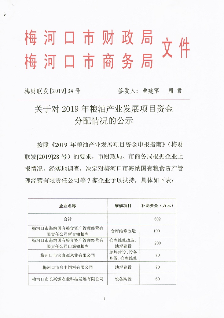 关于对2019年粮油产业发展项目资金分配情况的公示