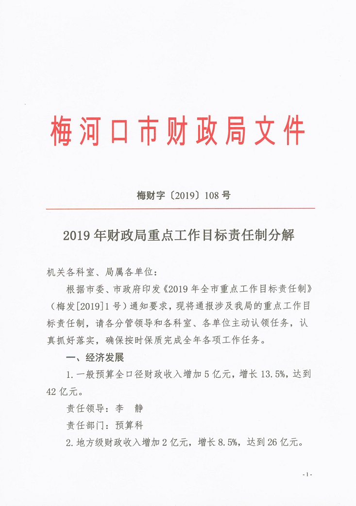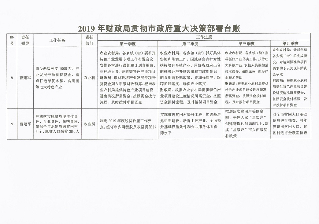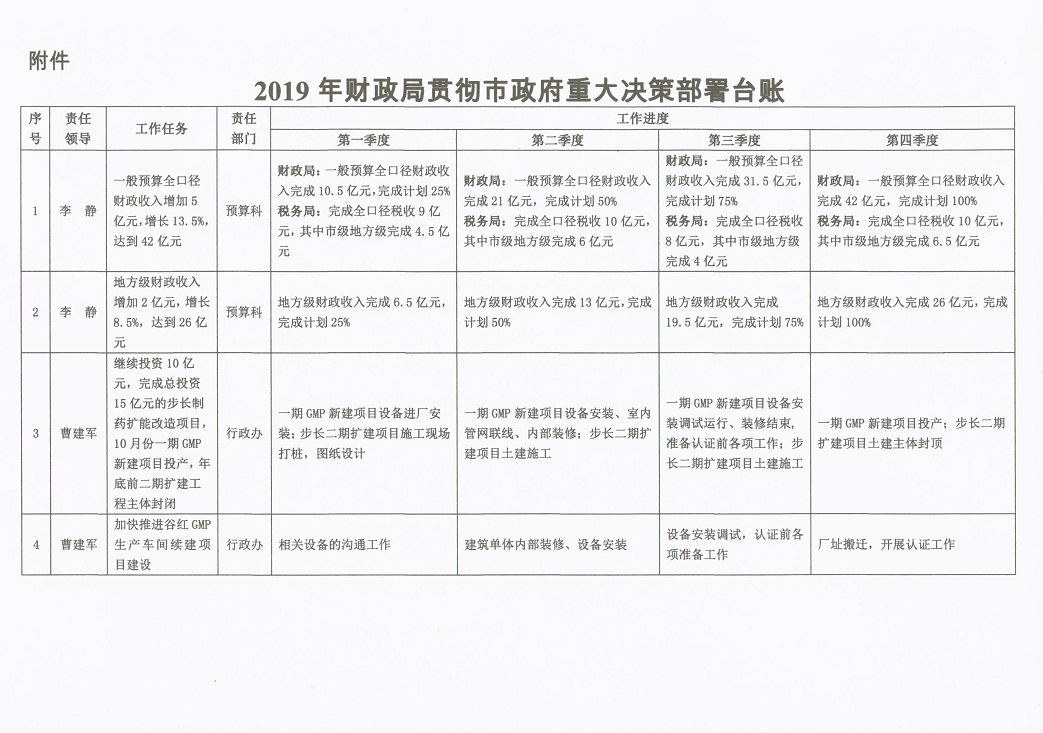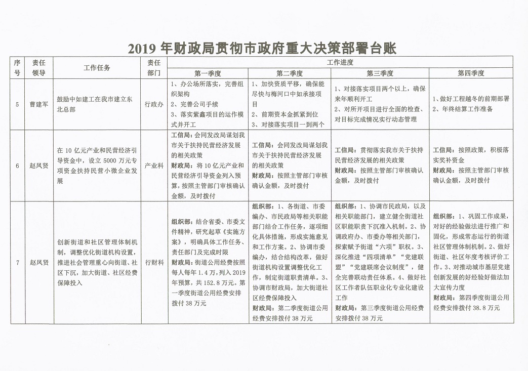 2019年财政局重点工作目标责任制分解