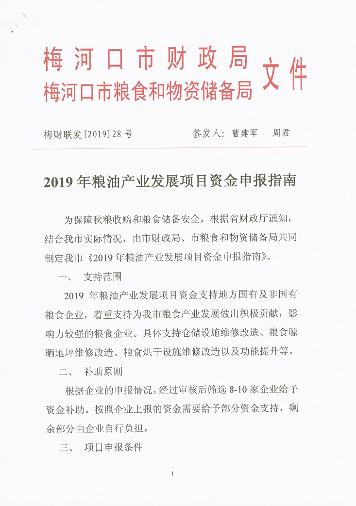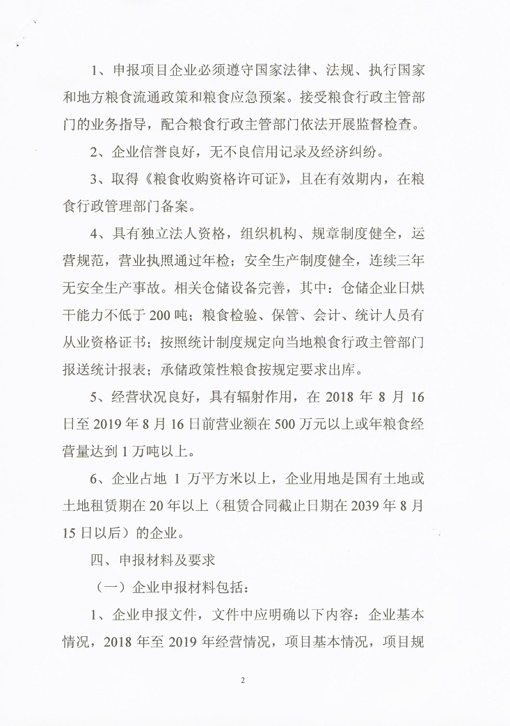 2019年粮食产业发展项目资金申报指南
