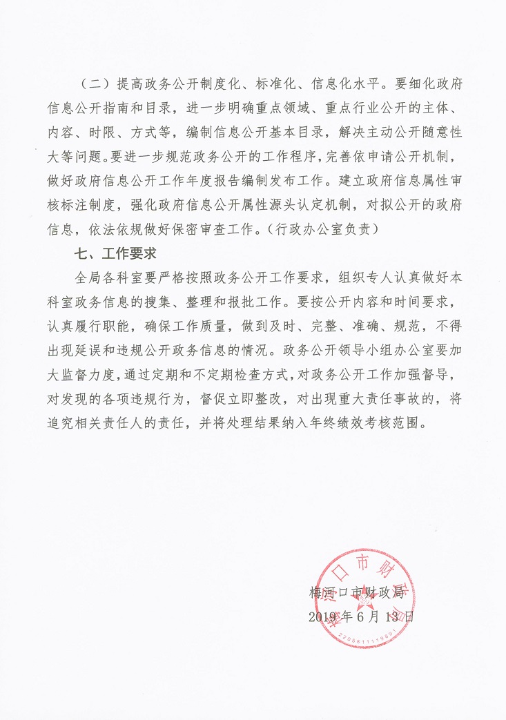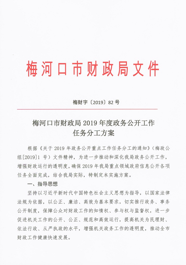 梅河口市财政局2019年政务公开工作任务分工方案