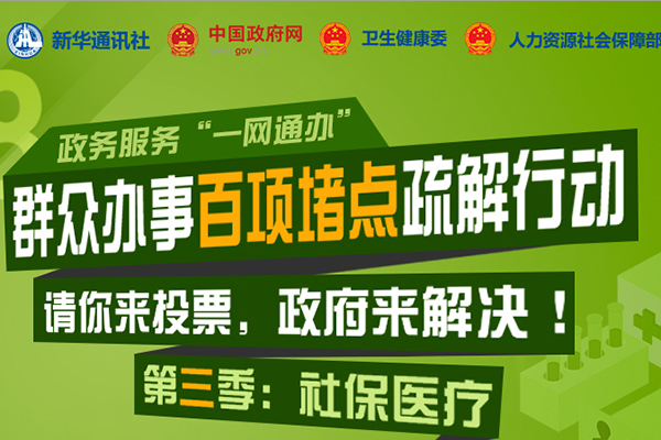 7月6日起,国家发展改革委、国办信息公开办、新华社、中国政府网、卫生健康委、人力资源社会保障部、医疗保障局等7部门和单位联合发起第三季堵点问题征集活动,聚焦社保医疗领域办事堵点问题。请结合自身所遇到的涉及看病就医、养老金认证、报销生育相关费用等经历参与投票。所征集的信息经大数据分析后,我们将选择群众反映最强烈的20个“堵点”问题,推动有关地方、部门限时解决。