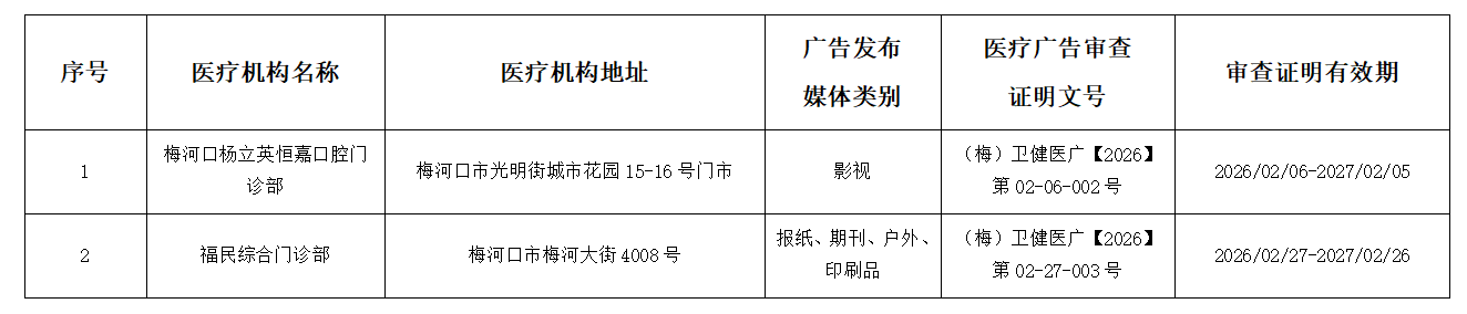 医疗广告审查证明公示(2026年第2号)