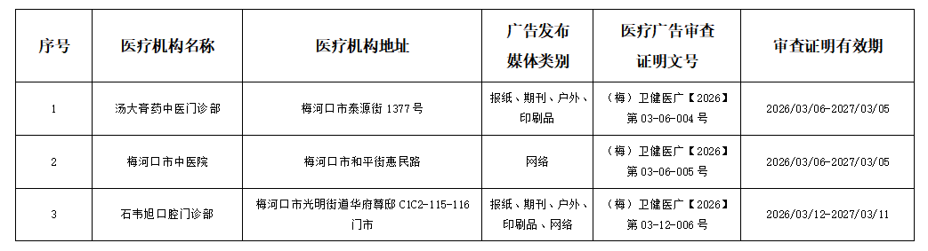 医疗广告审查证明公示(2026年第3号)