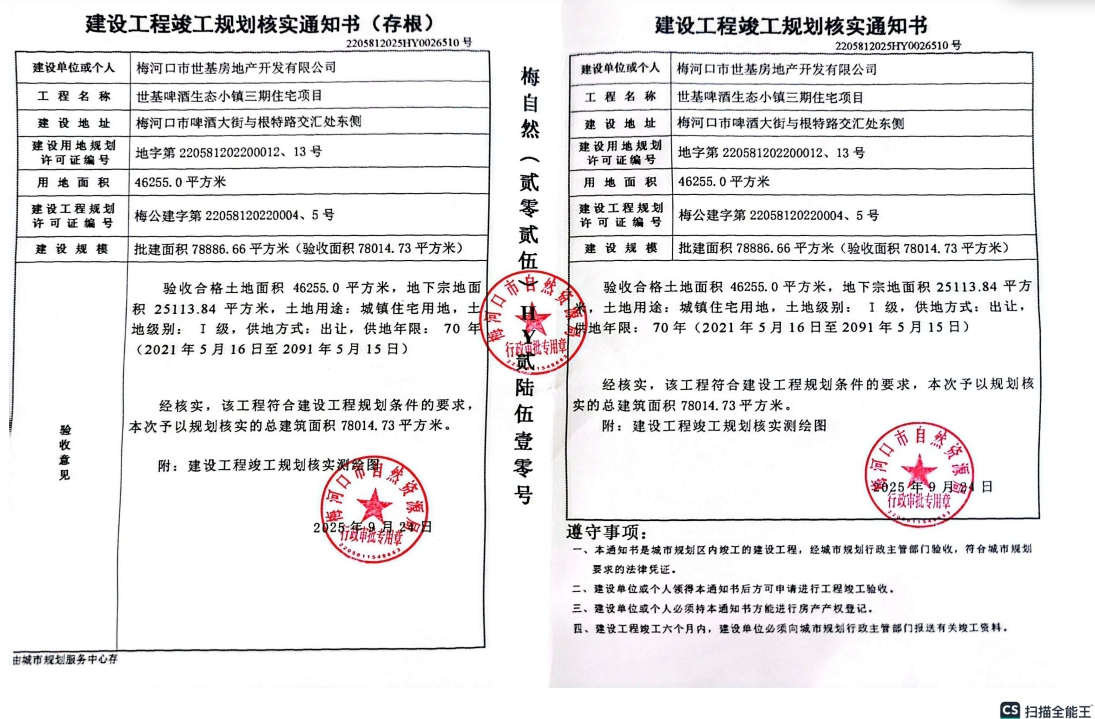 规划条件核实与土地核验合格证—世基啤酒生态小镇三期住宅项目