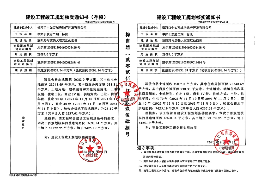 规划条件核实与土地核验合格证—中如长安府二期一标段