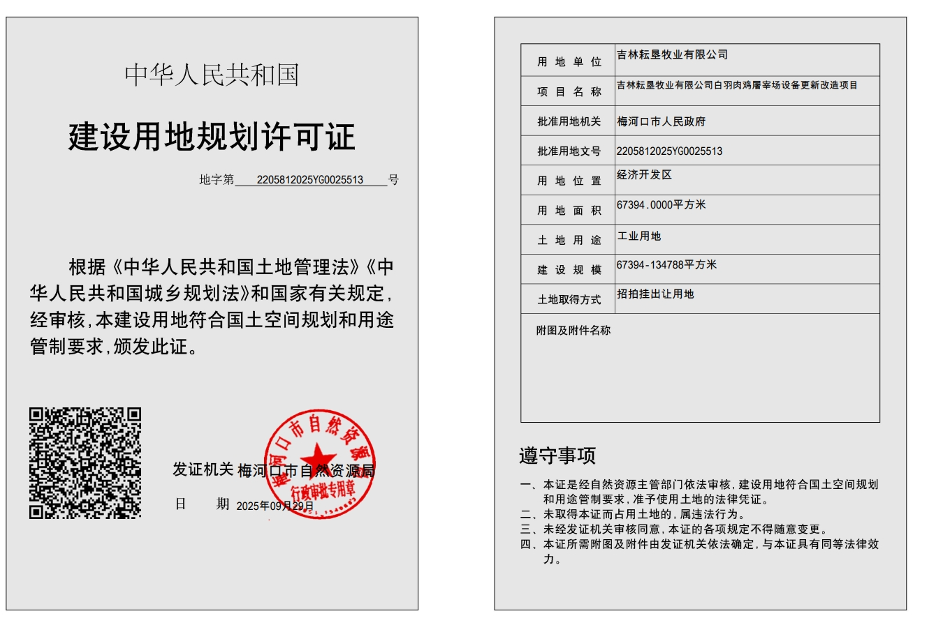 建设用地规划许可证—吉林耘垦牧业有限公司白羽肉鸡屠宰场设备更新改造项目