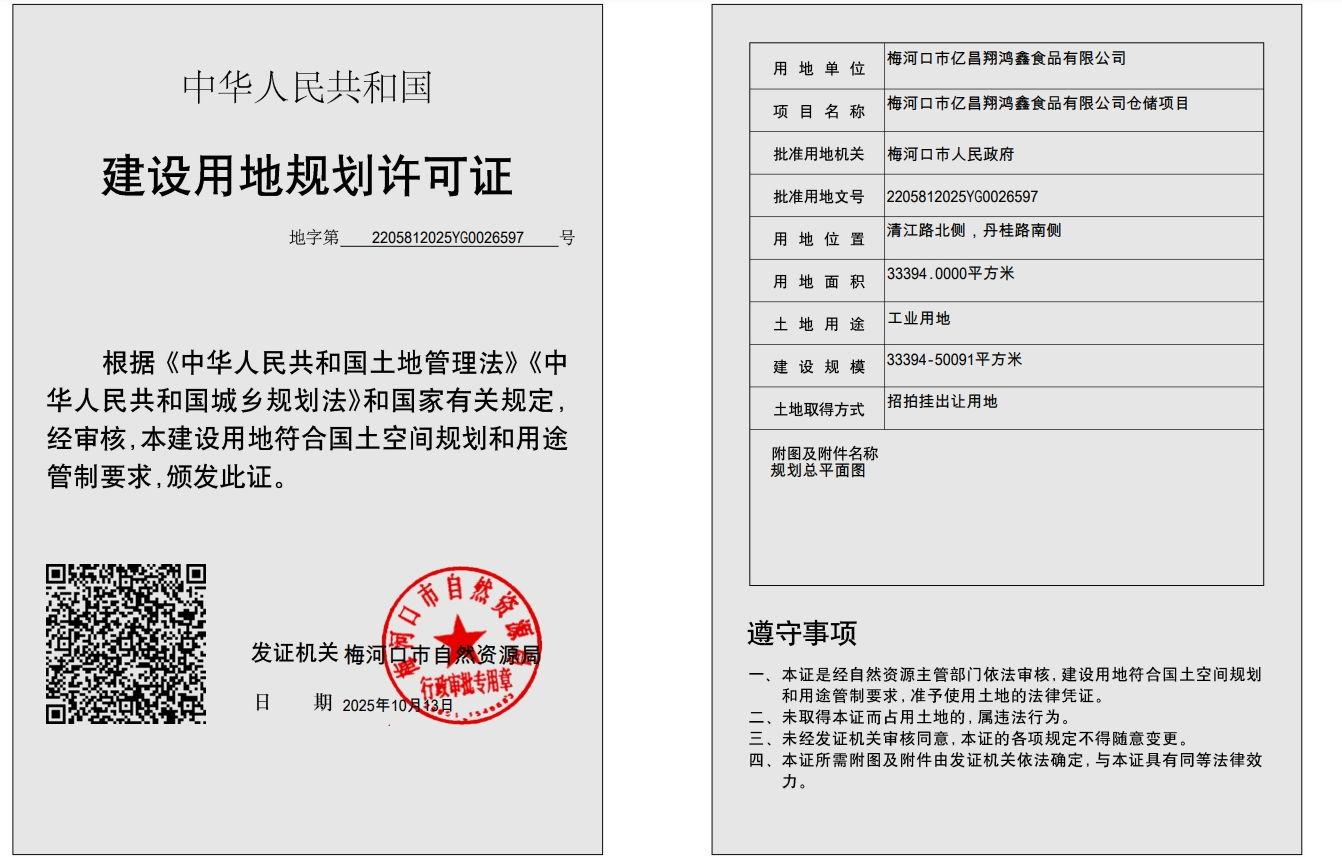 建设用地规划许可证—梅河口市亿昌翔鸿鑫食品有限公司仓储项目