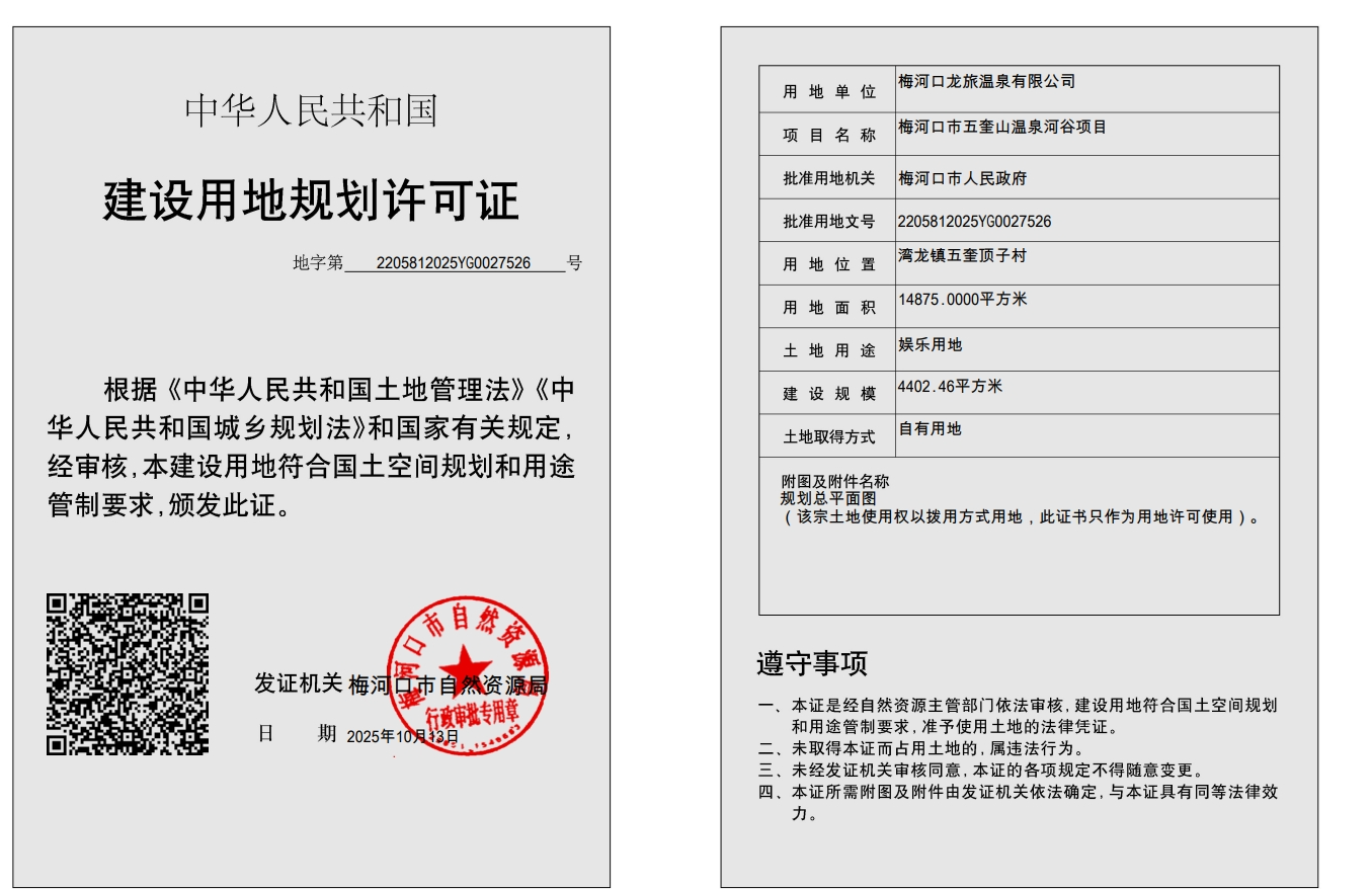 建设用地规划许可证—梅河口市五奎山温泉河谷项目